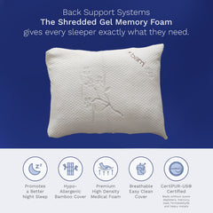 Engineered for A Great Night's Sleep. Support & Comfort Combined for total relaxation. Optimal orthopedic support for the neck and spine. Premium shredded gel memory foam blend to allow freedom to shape as you please, allowing you to sleep very well at night on a pillow uniquely your own.