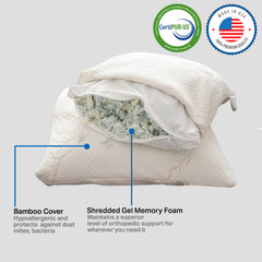 Shredded Gel Memory Foam Antimicrobial bamboo pillow